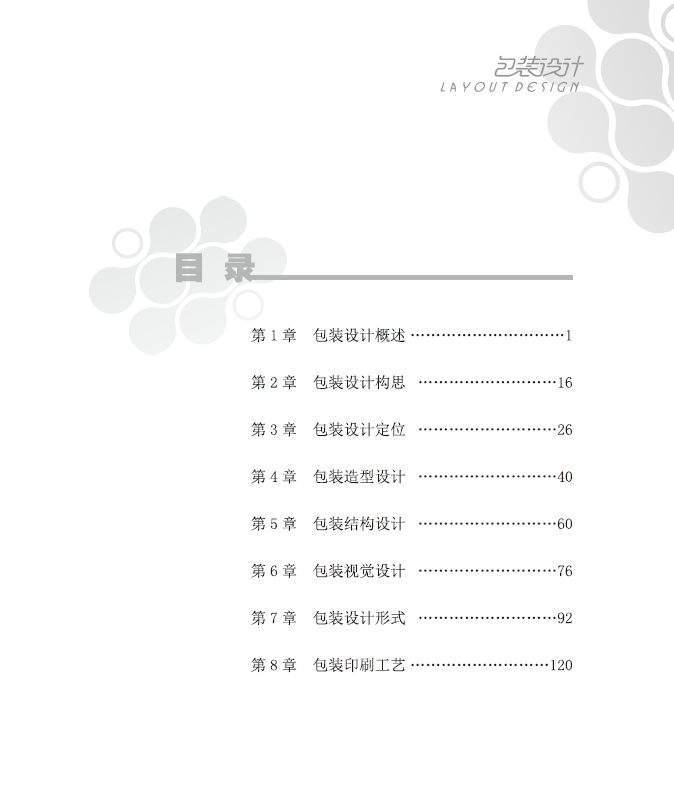 《包装设计》 书讲述了包装设计的各个方面, 对包装设计的发展历史、 包装设计构思、 包装设计定位、 包装造型设计、 包装结构设计、 包装视觉设计、 包装设计形式等进行了详细介绍, 还包括对包装的材料、 印刷工艺, 包装容器的制作材料及印刷工序, 系列化包装的理念和视觉传达设计形式, 绿色包装的理念、 发展、 材料等进行了全面的讲解。