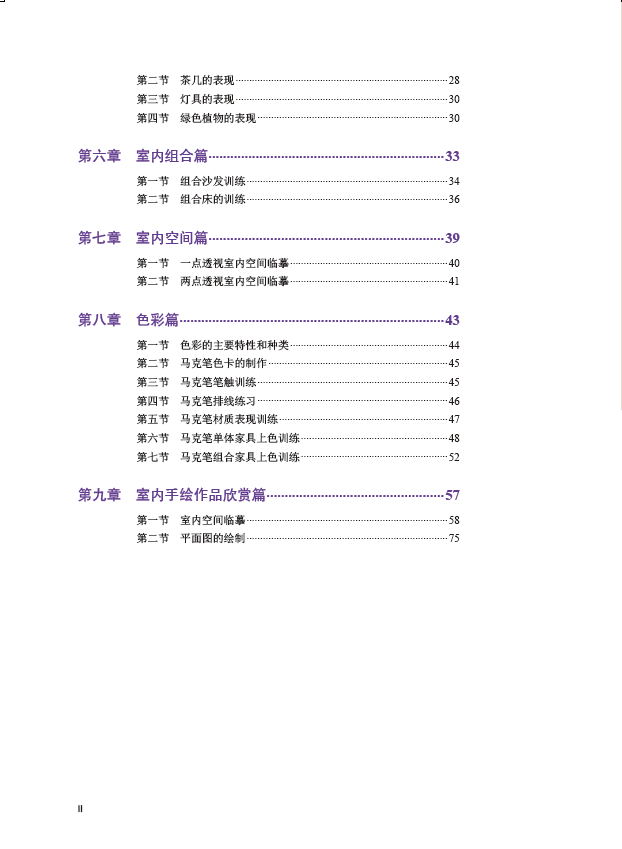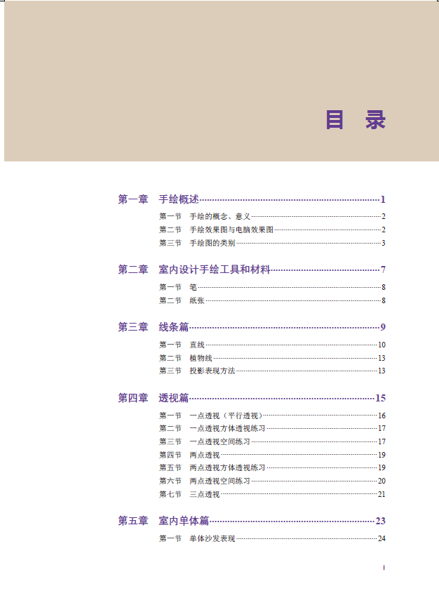 本书着重培养学生绘画和表达方案的能力。其中,手绘是介于感性与理性之间的一种绘画形式,是为阐明设计服务的,要加强手绘效果图对建筑装饰设计的重要作用,加强学生创造力和表现力的培养。室内手绘本身就是一个构想、分析、修正、改进的过程,也是一个综合解决环境、功能、空间、形态、结构等各方面问题的过程。在设计草图过程中,设计者需要将大量的思维活动,通过勾勒,在纸上形成可视的图形,然后经过推敲、分析、交流、反馈和调整,不断深化和完善设计方案,找到合理的设计定位后确立正稿,实现思维与表现的高度统一。