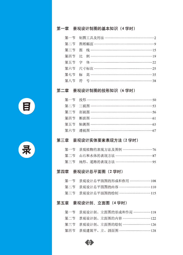 本教材以技能应用为目标,密切结合最新景观设计工程实例,突出景观设计的特点,在阐释景观制图原理、 方法的同时, 给予图纸绘制以既定的统一标准和要求, 让读者能够理解并掌握景观设计过程中所涉及的不同图纸的深度要求。 例如在最后三个章节中, 按照景观方案设计、 景观扩初设计和景观施工设计结合实际工程图纸来阐释不同深度的制图内容和要求, 并附以实际工程施工图纸, 便于学生对景观制图的实际应用有更为深入的理解。 教材内的图例和图纸都来源于实际的景观设计项目, 且每一章节都配有对应的练习题, 便于学生学习和应用。