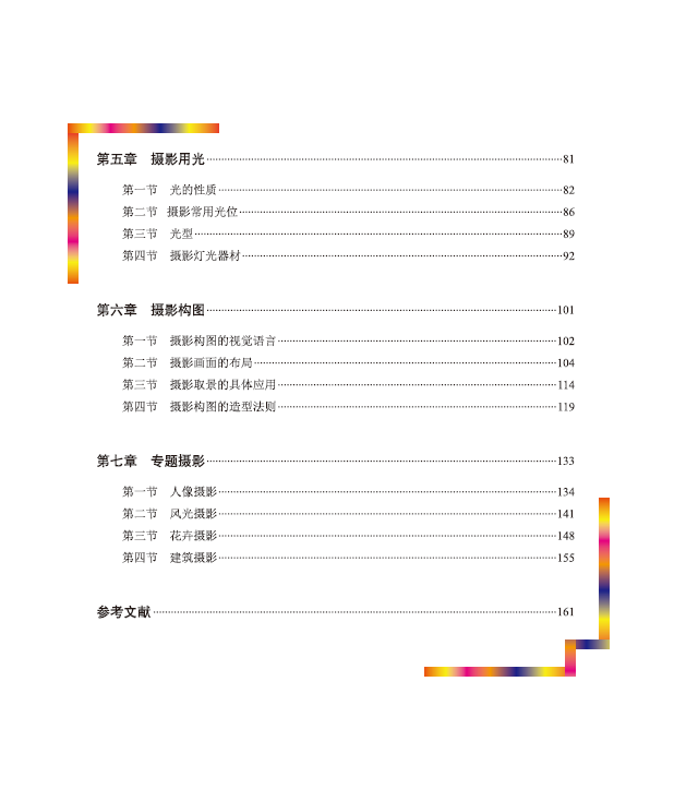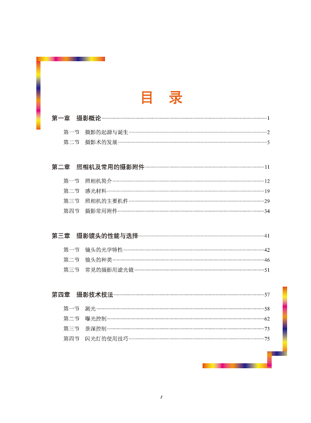 本书是高等院校艺术设计专业 “十三五” 规划教材。 全书共分七章, 内容包括摄影概论、 摄影发展史摄影器材、 摄影技术技法等。 本书使用大量作者亲手拍摄的作品, 并将从事摄影行业近20年来掌握的摄影技艺、 创作思想和创意手法等与图片结合, 阐述摄影技法与艺术表现。 读者在欣赏美丽作品的同时,也能根据书中的介绍掌握拍摄技巧。 本书既有理论上的指导,又有实践方面的经验总结,适用性强, 适合作为开设摄影课程的艺术类专业学生的教材, 同时还可以作为专业摄影人士和技术人员的参考用书。