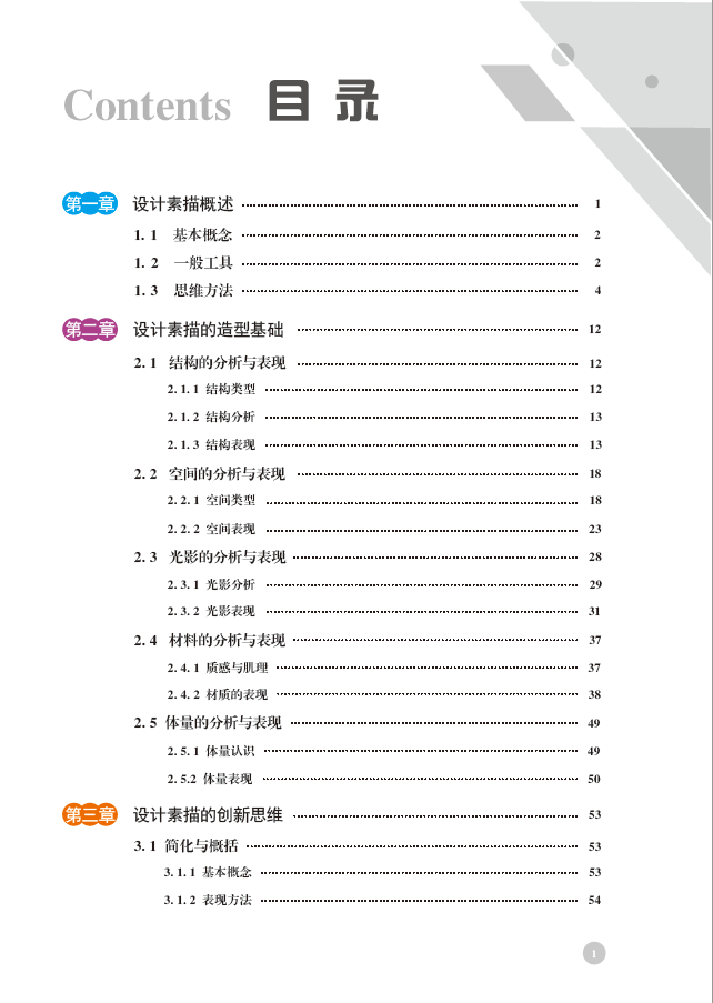 本书围绕“重塑设计基础、培养创新思维”主旨,从眼、脑、心、手四种素质潜能训练展开教学,分别设置了结构、空间、光影、材料、体量分析表现等基础造型教学环节以及简化概括、分析变体、意象联想等主题训练。通过设计素描课程教学,为我们今后从事具体的设计提供必备基础,这也是设计素描教学目的所在。