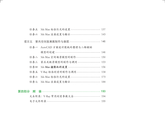 随着时代的迅猛发展和生活节奏的加快, 在建筑设计、 室内设计、 家具设计等行业中,手工制图和手绘效果图由于效率低已经跟不上发展节奏,取而代之的是功能强大的计算机辅助设计, 这就要求相关设计专业能够熟练掌握相关软件的使用方法和操作技巧。 有鉴于此, 本书对3ds MaxN-Ray基础知识和实用案例进行了详细的讲解, 同时突破了传统的效果图制作的编写模式, 以岗位职业能力分析和职业技能考核为指导, 以项目式教学和任务驱动为总原则, 力求理论和实践相结合。